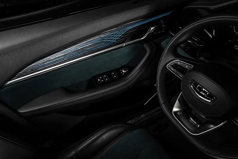 - Декоративная отделка: Отделка черной кожей и изумрудной замшей, вставки \"Матовая бронза\"