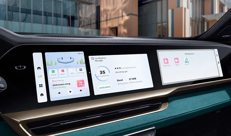 - Полноцветный ЖК-монитор: два по 12.3\", сенсорные