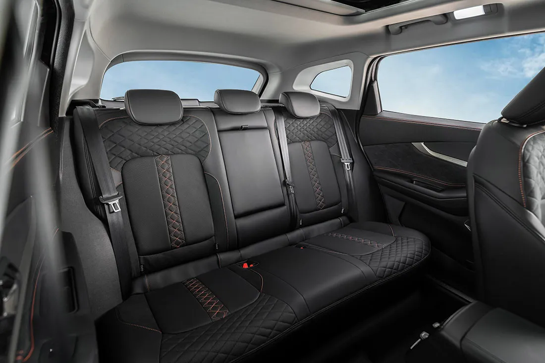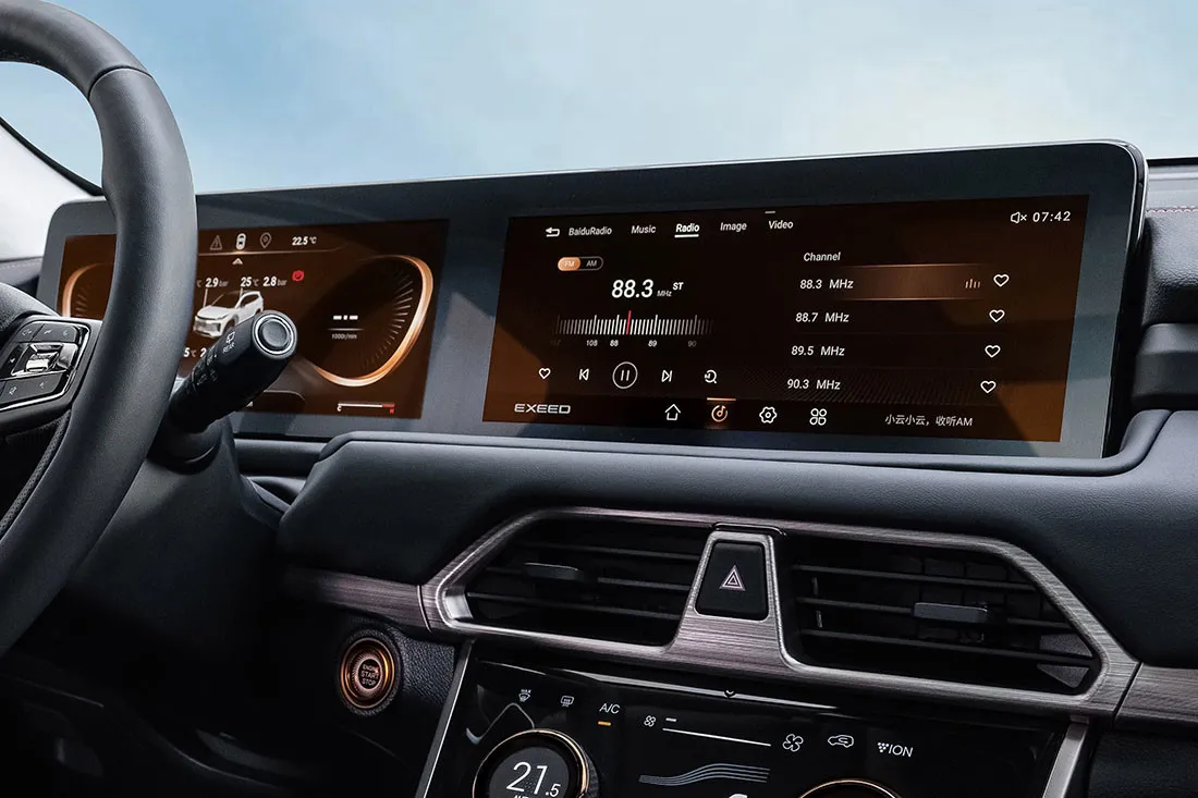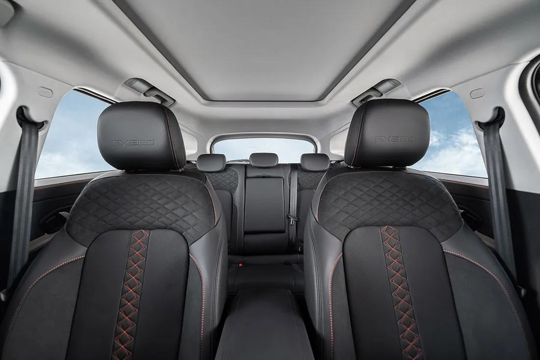 Главной особенностью Чери Эксид ТХЛ 2021 года является объединение во внешности абсолютно разных характеристик – элегантности, спортивной составляющей, мускулистой формы и грозного внешнего вида. Передняя часть автомобиля является наиболее выразительной и запоминающейся. Важную роль в этом играет крупная решетка радиатора, переходящая в разрез воздухозаборника, по краям от которой установлены довольно узкие головные фары. Такая компоновка придает автомобилю хищный взгляд, пронизанный мощью и силой.Сбоку паркетник выделяется благодаря массивным аркам колес и восходящей оконной линии. Задняя часть кузова напоминает многие современные модели SUV-класса, где дверь багажника имеет достаточно аккуратные формы. Фонари объединены между собой при помощи светодиодной вставки и планки с отделкой под хром. Нижняя часть заднего бампера получила дополнительную металлическую накладку, из которой выходят два прямоугольных патрубка системы выхлопа.