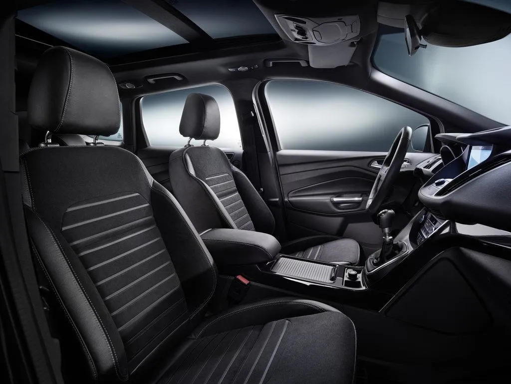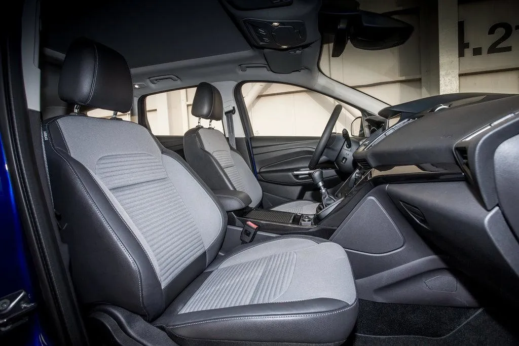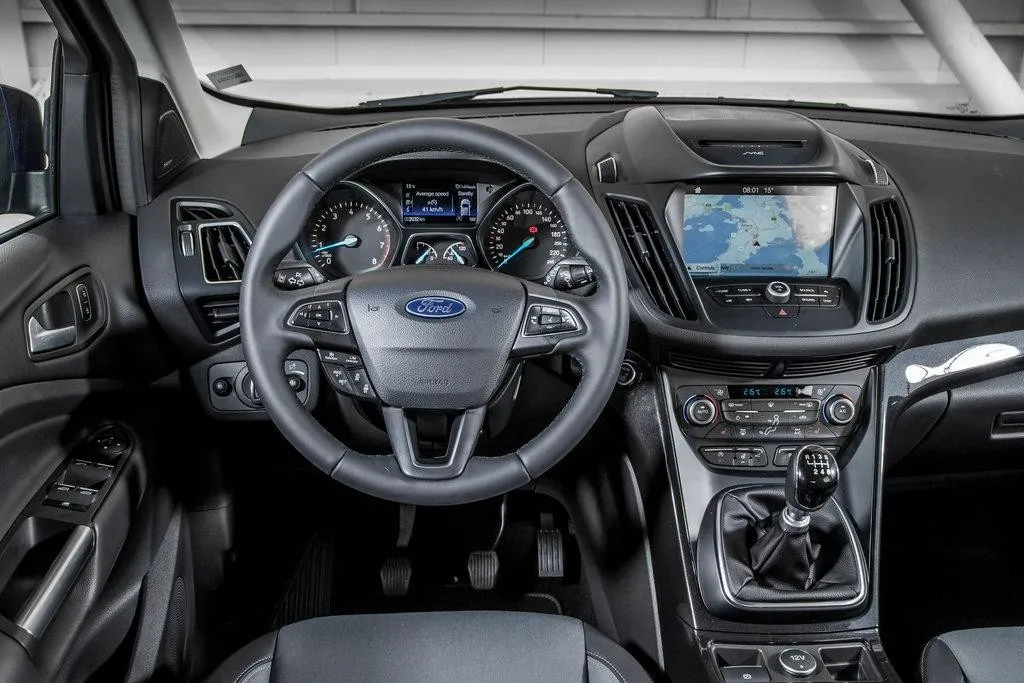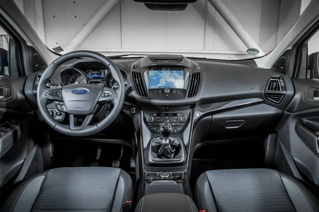 Салон компактного кроссовера Ford Kuga, как и внешний вид, имеет яркий и массивный вид. Такой вид создается благодаря выпуклым элементам на передней панели. Глядя на переднюю панель, сразу понимаешь, что массивность автомобиля досталась не только внешнему виду.