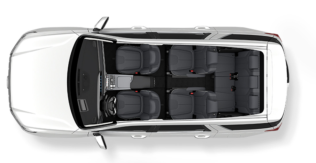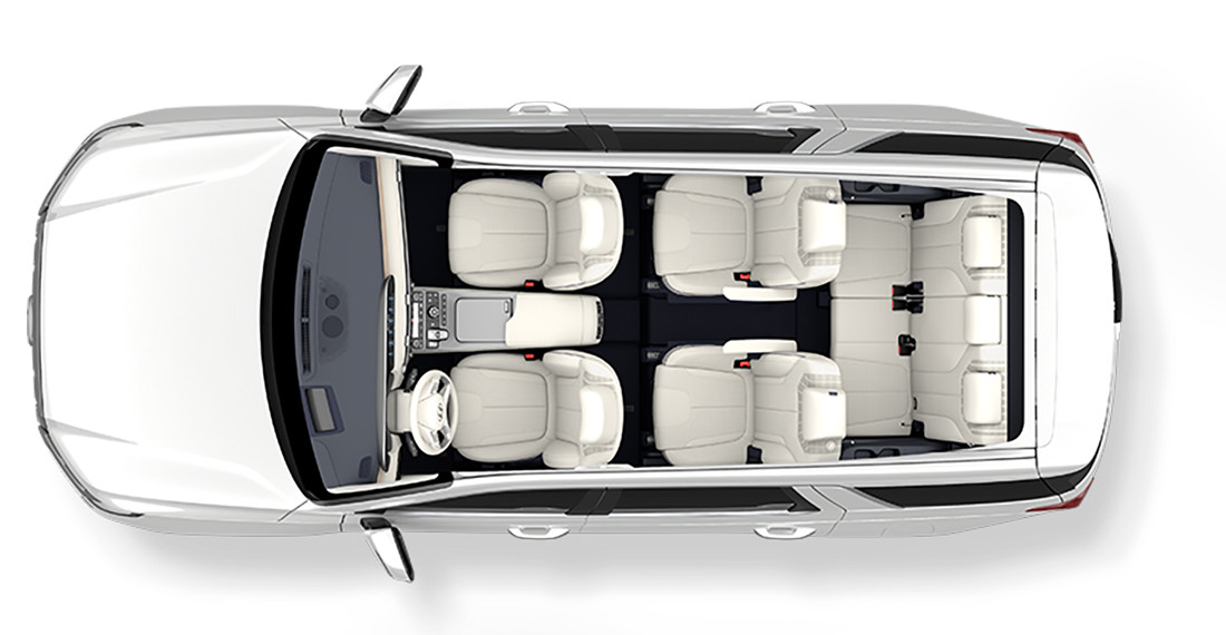 - Объем багажника, л: 509 (1297 (со сложенным вторым рядом), 2447 (со сложенным третьим рядом))