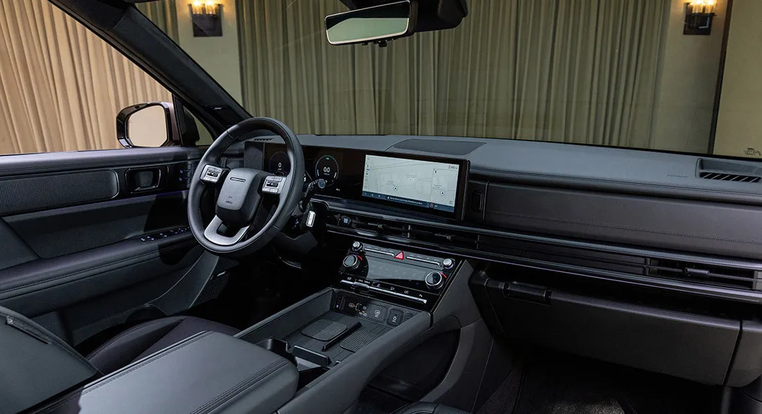 - Подсветка: Лампы для чтения для первого ряда, светодиодное освещение салона, атмосферная подсветка салона, подсветка перчаточного ящика