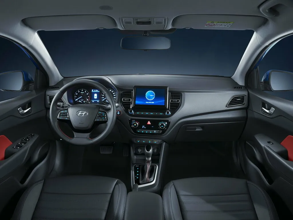 Solaris приобрело более гармоничный и в меру агрессивный дизайн экстерьера. Немного увеличенные габариты, элегантный силуэт, ниспадающая линия крыши и фирменная шестиугольная решетка радиатора придают Solaris некоторую солидность и актуальность, превращая его в достойного соперника по части дизайна для многих популярных иномарок.