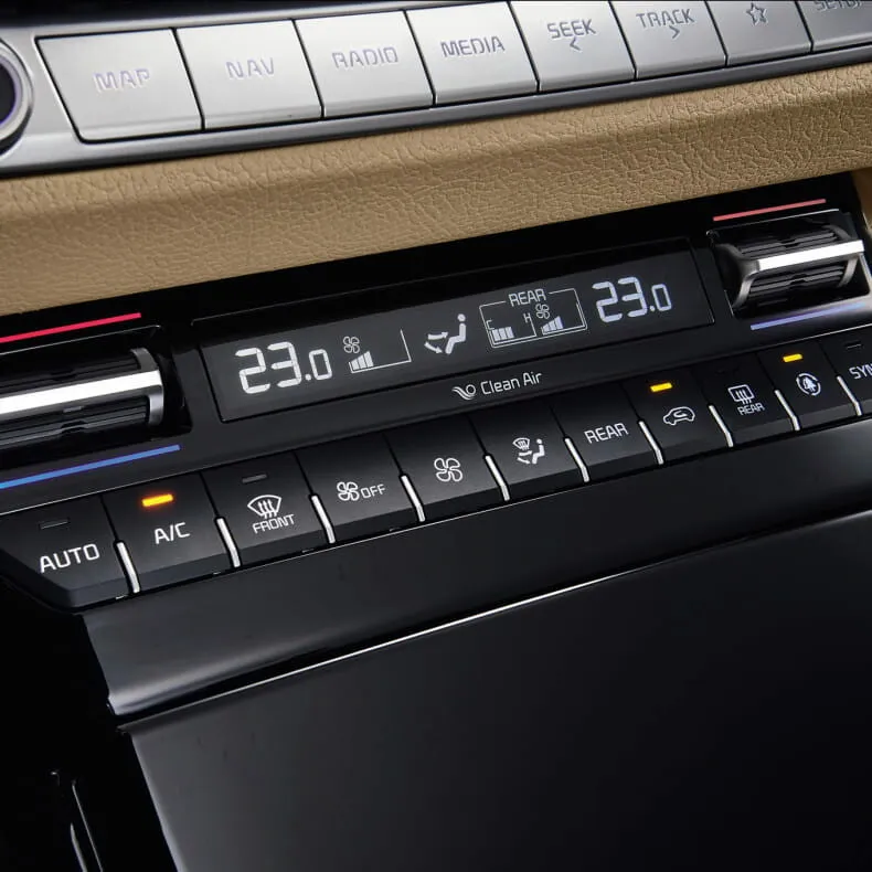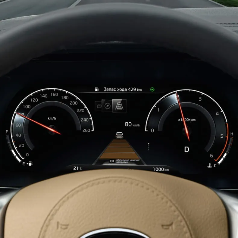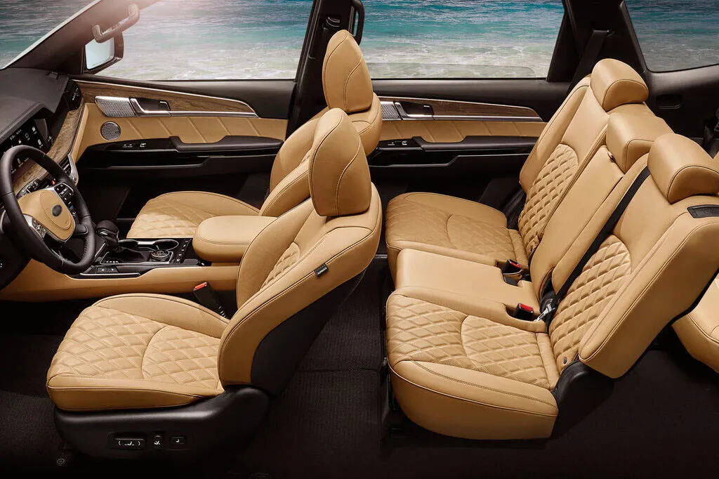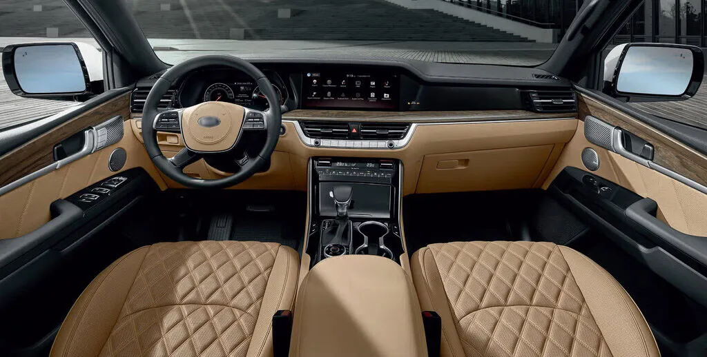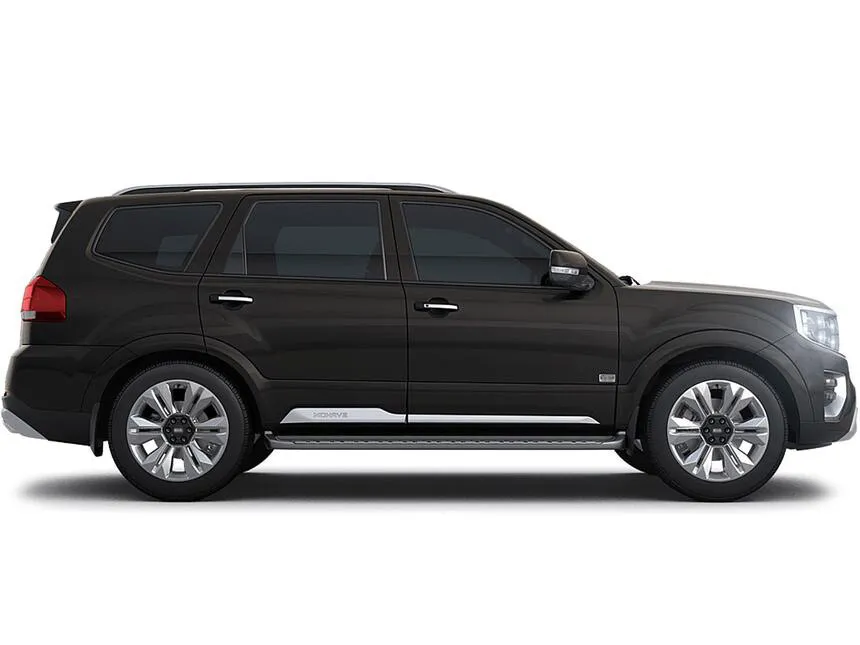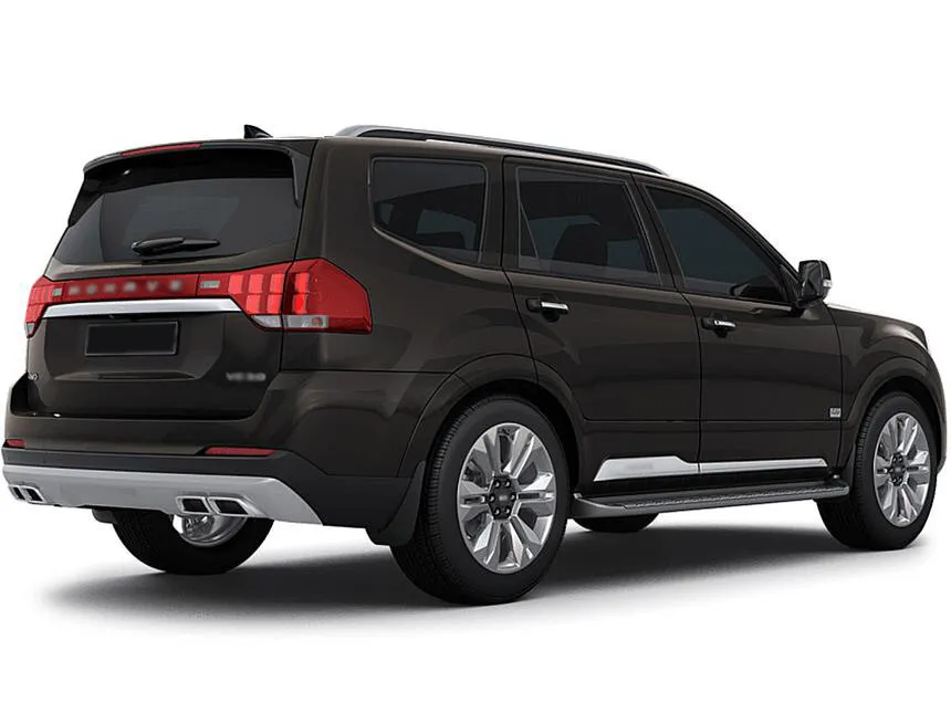 По бокам переднего бампера вынесены светодиодные противотуманные фонари, вдоль которых тянутся алюминиевые планки. На корме у Mohave появилась новая оптика, тоже разделенная на несколько сегментов и соединенная между собой широкой полоской стоп-сигнала. Задний бампер практически полностью укрыт металлической пластиной, в которую встроены 4 патрубка выхлопной системы.