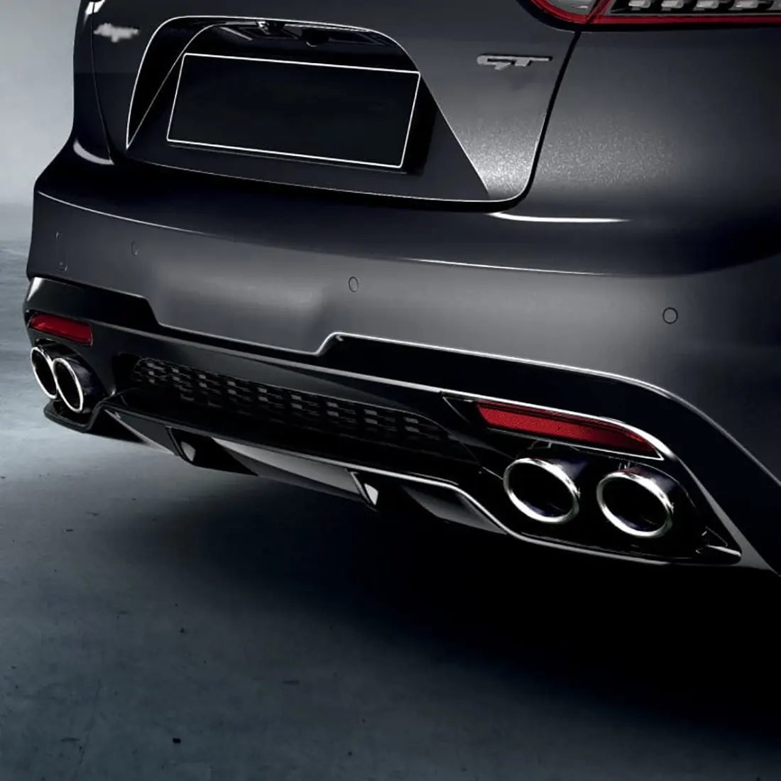 В сравнении с другими моделями Kia фастбэк отличает несколько «приземленный» и вытянутый кузов. Спереди у него размещена стандартная, но немного удлиненная радиаторная решетка. То же самое касается и головной оптики со светодиодным наполнением. Передний бампер дополняется расширенным нижним воздухозаборником и достаточно крупными боковыми. За колесными крыльями располагаются отверстия для выхода воздушных потоков. Вдоль верха дверцы багажного отсека пролегает овальный спойлер, который визуально совмещен с компактной светодиодной оптикой треугольной формы и со скругленными углами. На заднем бампере присутствуют диффузор и сдвоенные патрубки выхлопной системы, закрепленные по обоим бокам.