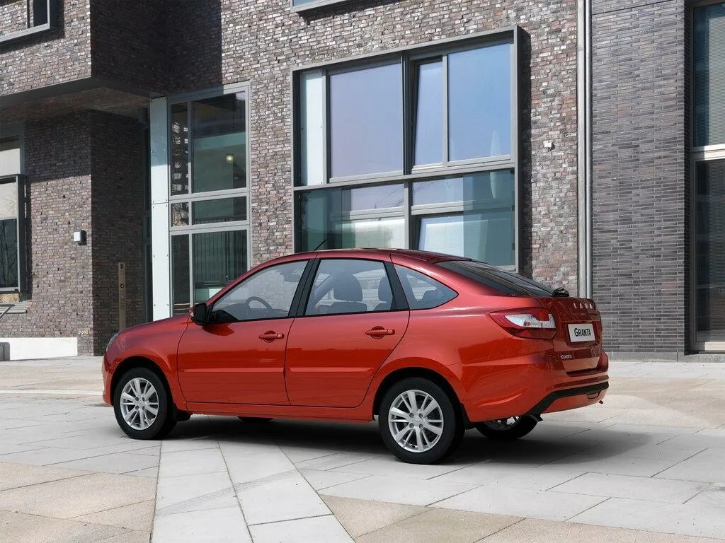 Сзади автомобиль получил перекроенный задний бампер с черной вставкой по низу, стилизованной под диффузор — других изменений по кузову машины не произошло. Разве что в палитру доступных для лифтбека Гранта цветов вошло два дополнительных оттенка: «Техно» (серо-коричневый) и «Сердолик» (красный). Плюс появились не доступные ранее дизайны колесных дисков.
