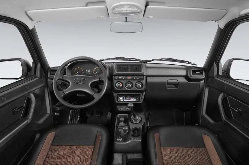 - Декоративная отделка: Интерьер черного цвета, обивка сидений коричневого цвета