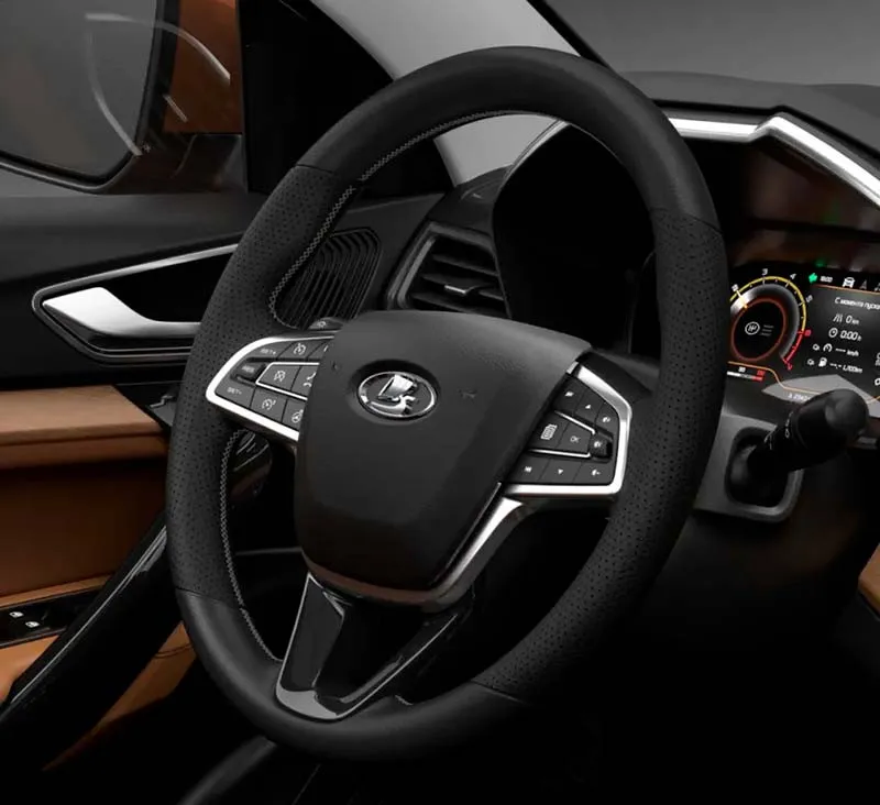 - Декоративная отделка: Интерьер черного цвета с коричневыми вставками