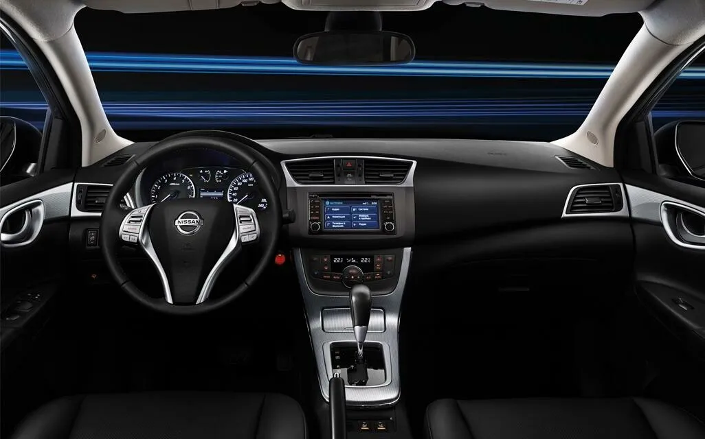 Салон автомобиля Nissan Sentra особо ничем не выделяется. Интерьер седана придерживается классического стиля. Здесь нет каких-либо пестрящих деталей или нестандартных дизайнерских решений. Все строго и стильно.