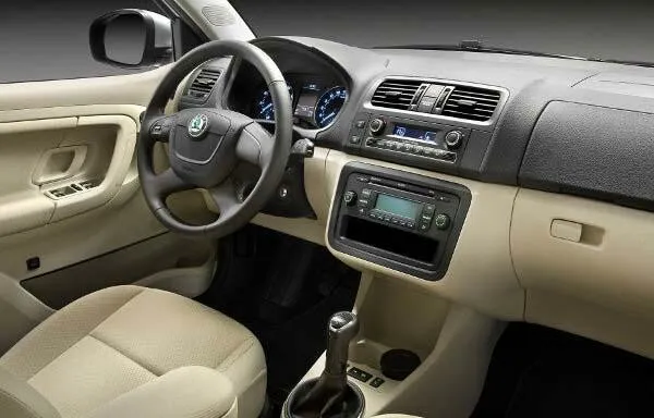 Интерьер автомобиля Skoda Fabia особо ничем не выделяется. Все детали интерьера выполнены в классическом стиле. Привычная приборная панель, абсолютно привычная центральная консоль со всеми необходимыми блоками управления.