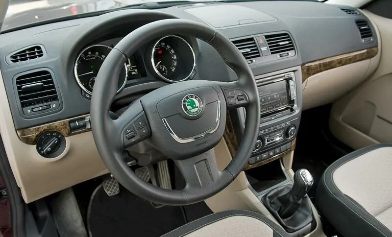 Интерьер Skoda Yeti особо ничем не выделяется. Ведь интерьер выполнен в классическом и строгом стиле, который присущ большинству автомобилей Volkswagen. Лаконичный салон хорош тем, что интерьер ничем не перегружен и понятен всем, кто оказался в автомобиле.