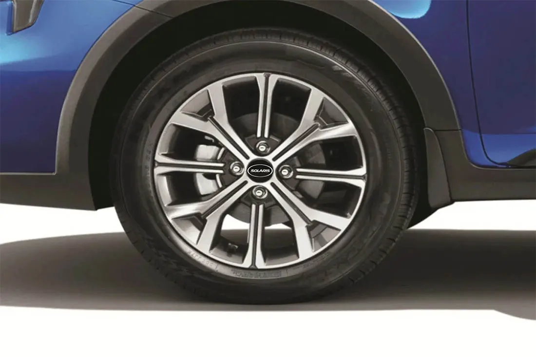- Бамперы: в цвет кузова, решётка радиатора с отделкой хромом и чёрным глянцем, декоративная защита переднего и заднего бамперов