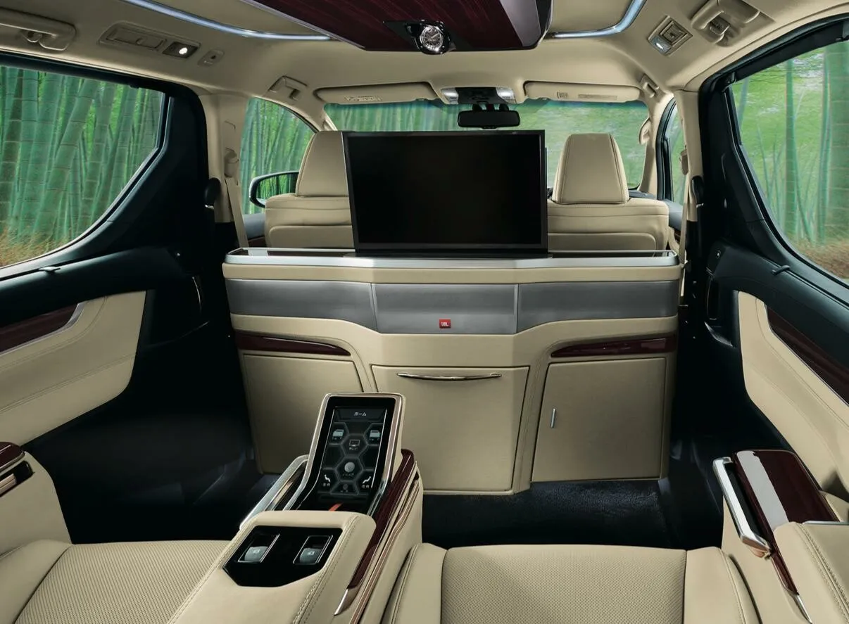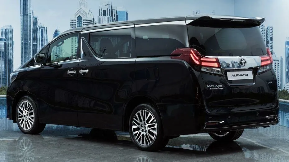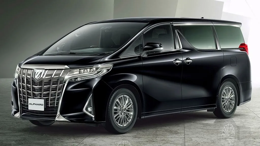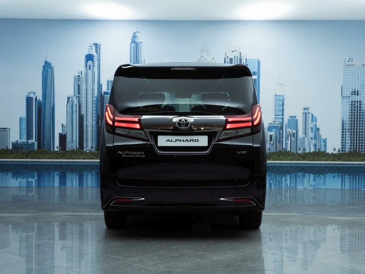 Одной из главных отличительных черт японского минивэна является его массивная радиаторная решетка с крупными ламелями, которые пересекаются между собой. По бокам она обрамляется хромированным кантом, заходящим под сравнительно узкую головную оптику. Капот у японской модели укорочен, а передний бампер, наоборот, расширен. По бокам в него встроили треугольные ниши, в которых размещены противотуманные фары. Главной деталью кормы Alphard являются крупные светодиодные фонари, которые, плавно изгибаясь вдоль подоконной линии, заходят на боковую часть кузова.