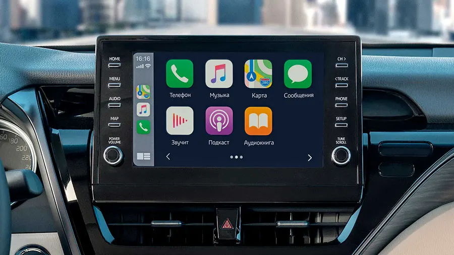 Хищный элегантный экстерьер обновленной Toyota Camry с первого взгляда подчеркивает статус ее владельца. Взгляните на крупные габариты автомобиля бизнес-класса, стильный современный дизайн, роскошные детали декора – с этой моделью вы легко подниметесь на новый уровень признания и престижа.